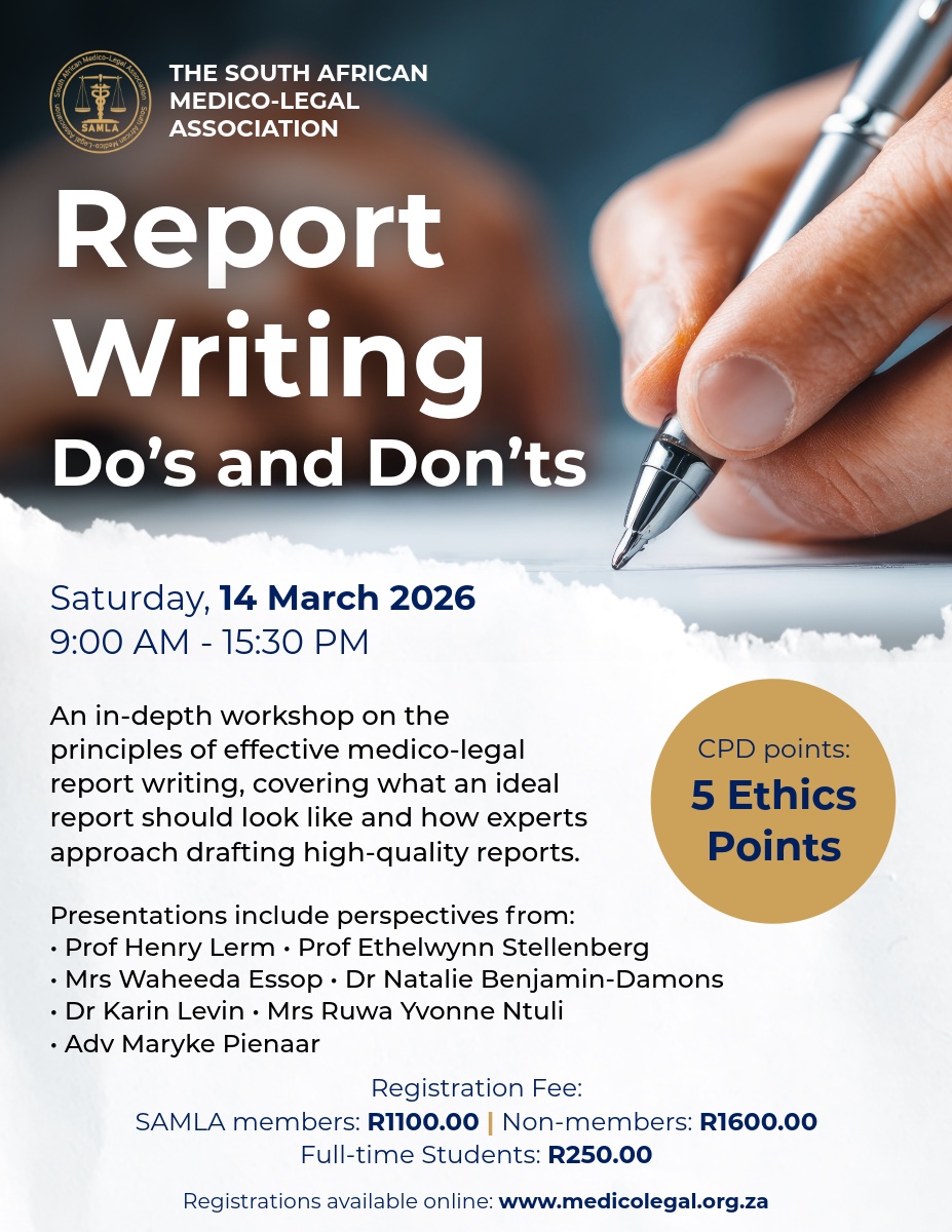 Main speakers: Mrs Waheeda Essop, Prof Ethelwynn Stellenberg, Mrs Ruwa Yvonne Ntuli, Dr Karen Levin, Ms Stacey Ayres, Adv Maryke Pienaar.